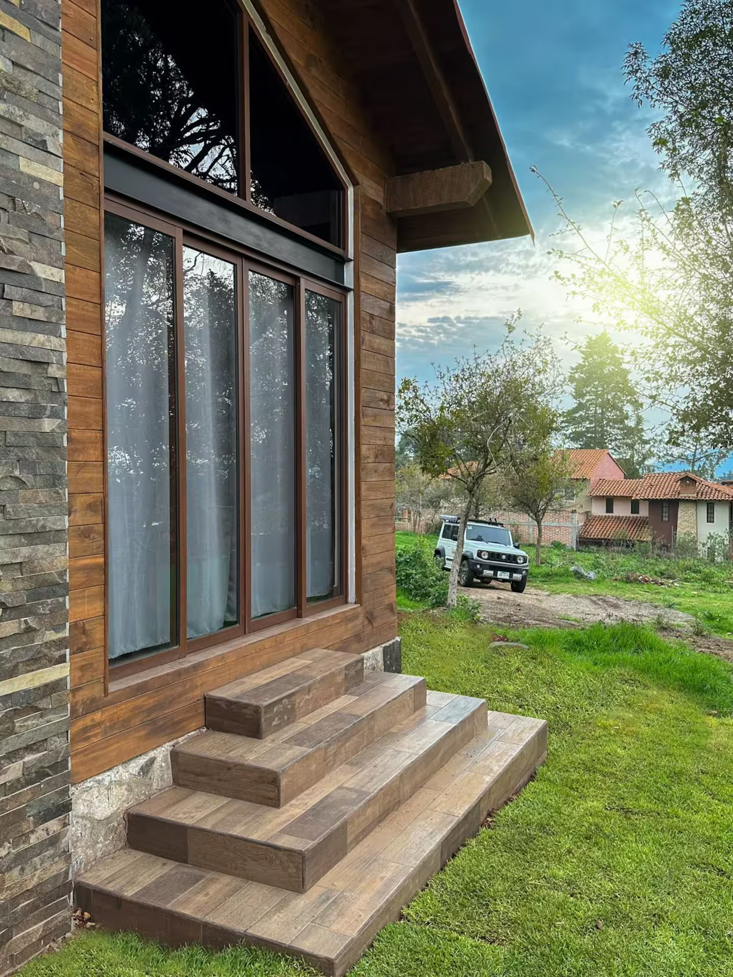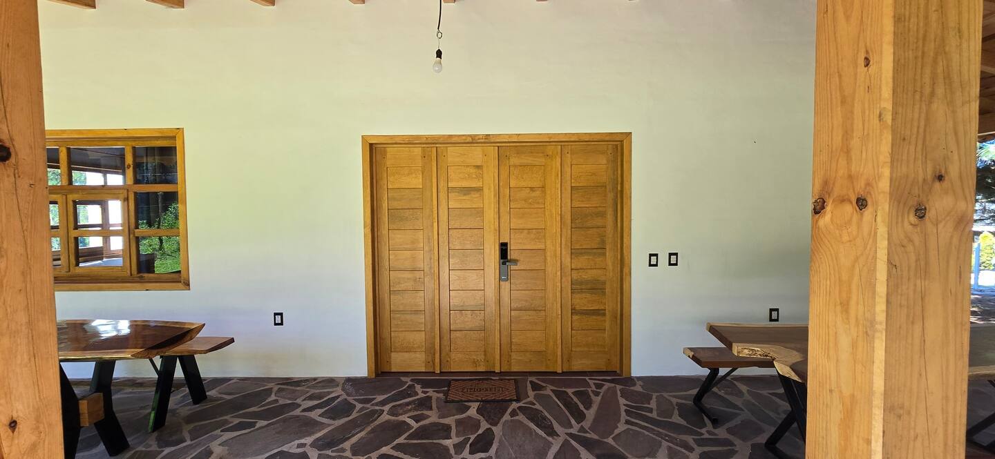 - Cámaras de seguridad exteriores en la propiedad (la cámara se encuentra en la parte exterior de la cabaña, por la entrada principal.)